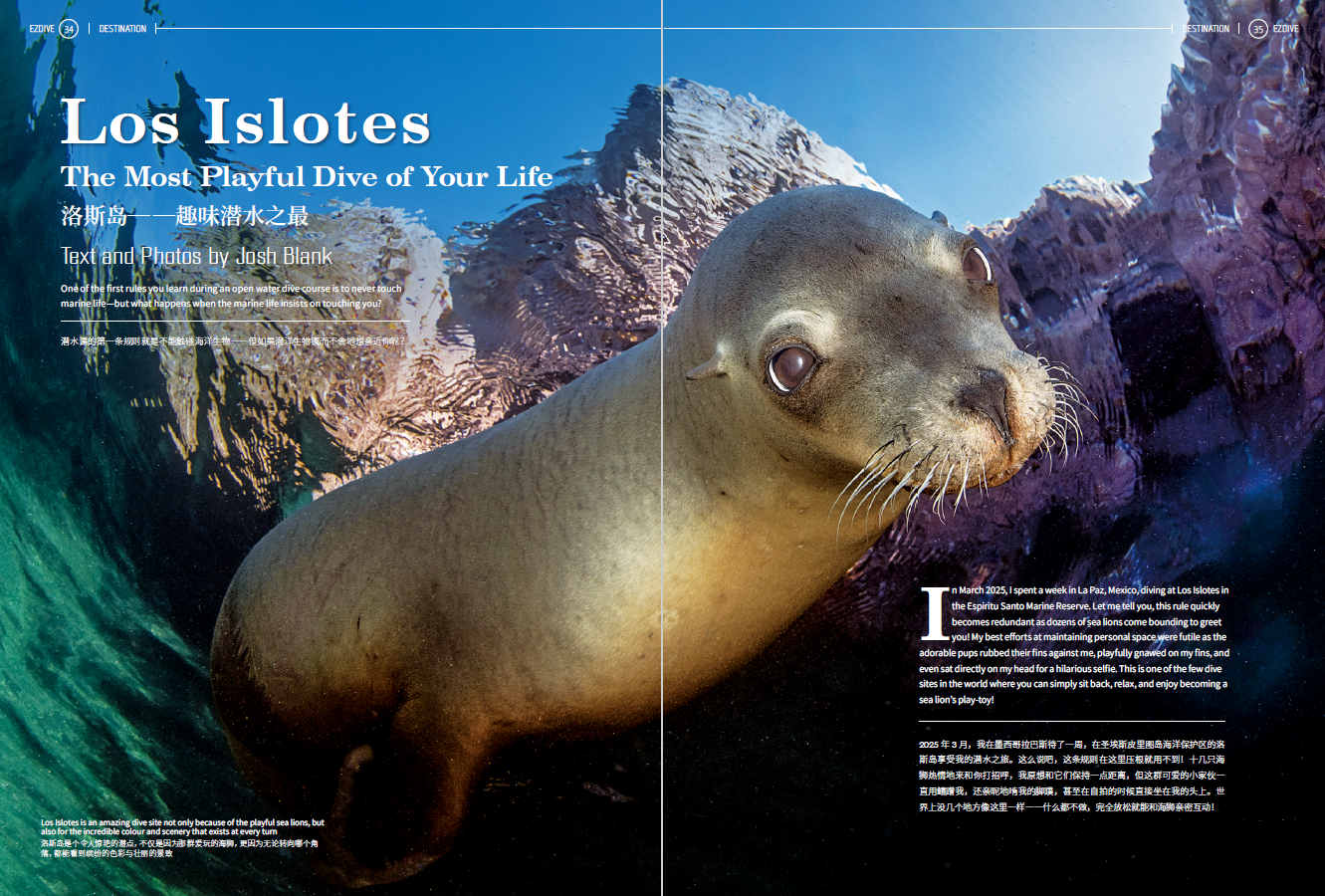 Just like the iconic cover of American Beauty, this issue’s cover features a lively sea lion from Los Islotes in La Paz. Follow Josh’s lens in this issue to explore this captivating dive destination.