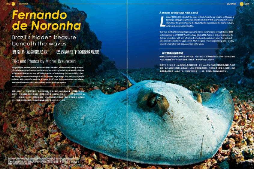 本期我們還將造訪三個風格迥異的潛水天堂:Tim帶我們走進菲律賓最早發展的潛水勝地——加萊拉港;Josh介紹了大堡礁的精華所在——伊莉特夫人島;而Michel則深入巴西費南多·迪諾羅尼亞,挖掘那片波浪之下的隱藏瑰寶。潛水的熱情,驅使我們不斷探索那片湛藍的未知世界。