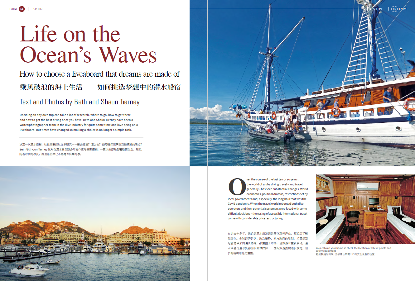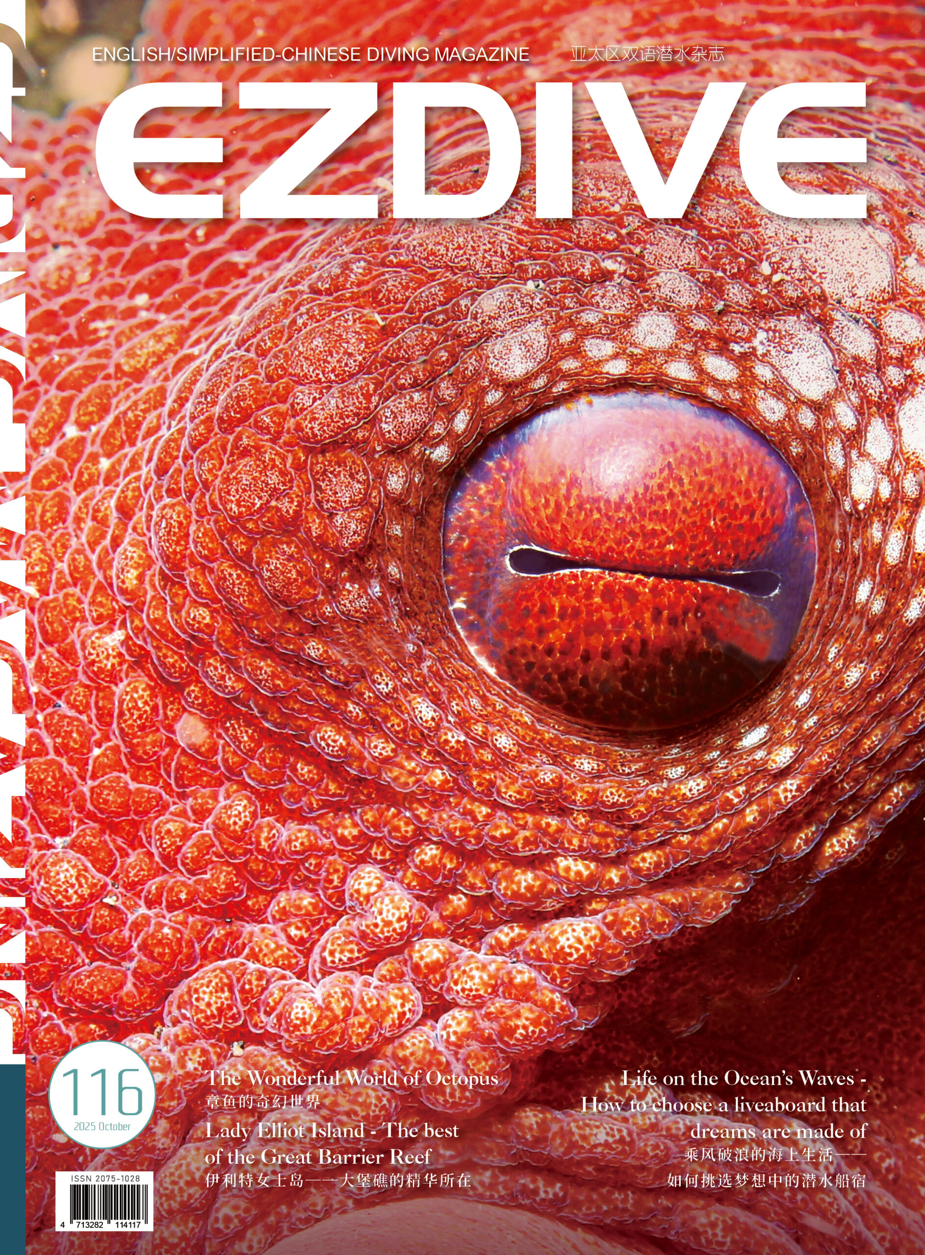 在装备专栏中,我们为你带来实用对比:氯丁橡胶、Yamamoto与新型环保材质,帮助你选出最适合自己的潜水服。而在水下摄影专栏中,Kate分享参加摄影工作坊所带来的技术与创作跃进;Beth与Shaun这对经验丰富的潜水搭档,则分享如何挑选梦想中的潜水船宿,让你在海上也能安心享受潜旅生活。