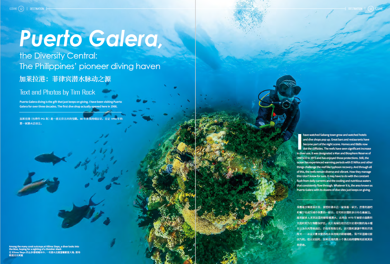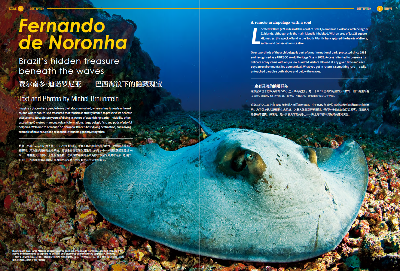 本期我们还将造访三个风格迥异的潜水天堂:Tim带我们走进菲律宾最早发展的潜水胜地——加莱拉港;Josh介绍了大堡礁的精华所在——伊利特女士岛;而Michel则深入巴西费尔南多·迪诺罗尼亚,挖掘那片波浪之下的隐藏瑰宝。潜水的热情,驱使我们不断探索那片湛蓝的未知世界。
